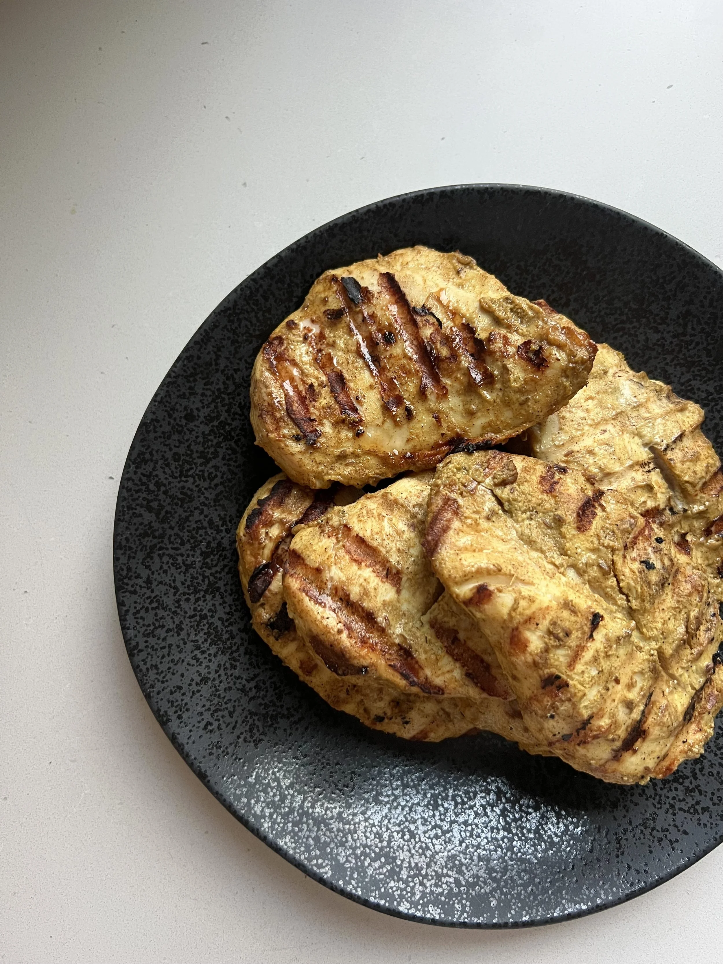 This curry yogurt grilled chicken salad is rich in spice and flavour but still fresh and easy to digest. Coconut yogurt naturally tenderizes the chicken while helping the curry, turmeric, cumin, coriander, cinnamon, and garlic fully infuse the meat. Grilling keeps the protein light while preserving moisture and depth of flavour. Using an unsweetened coconut yogurt keeps the marinade dairy-free and free from added sugars while adding beneficial cultures that support gut health.