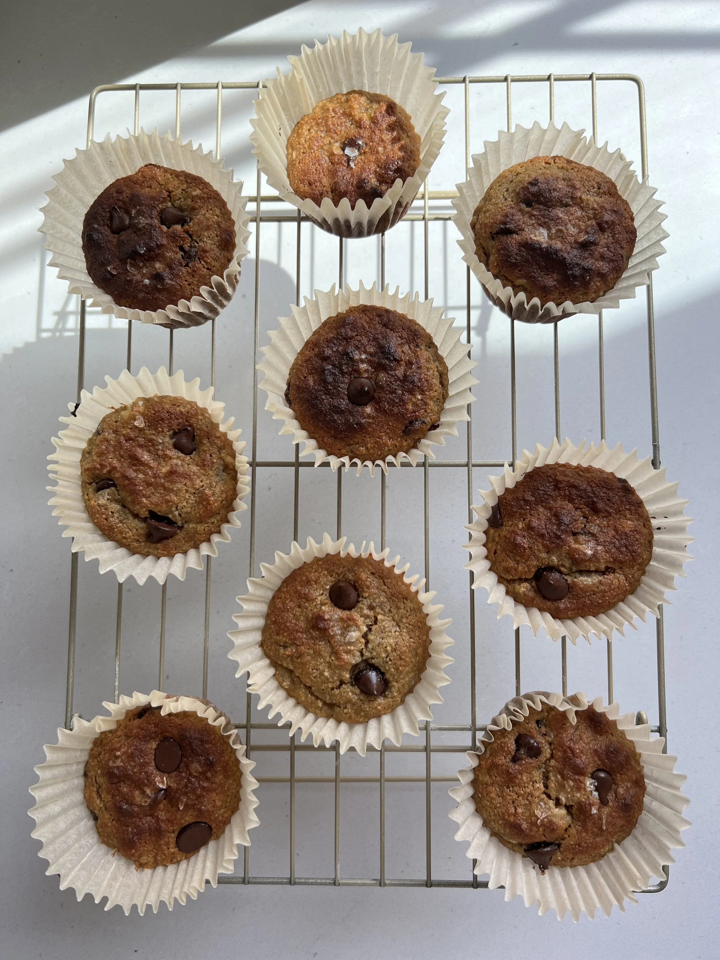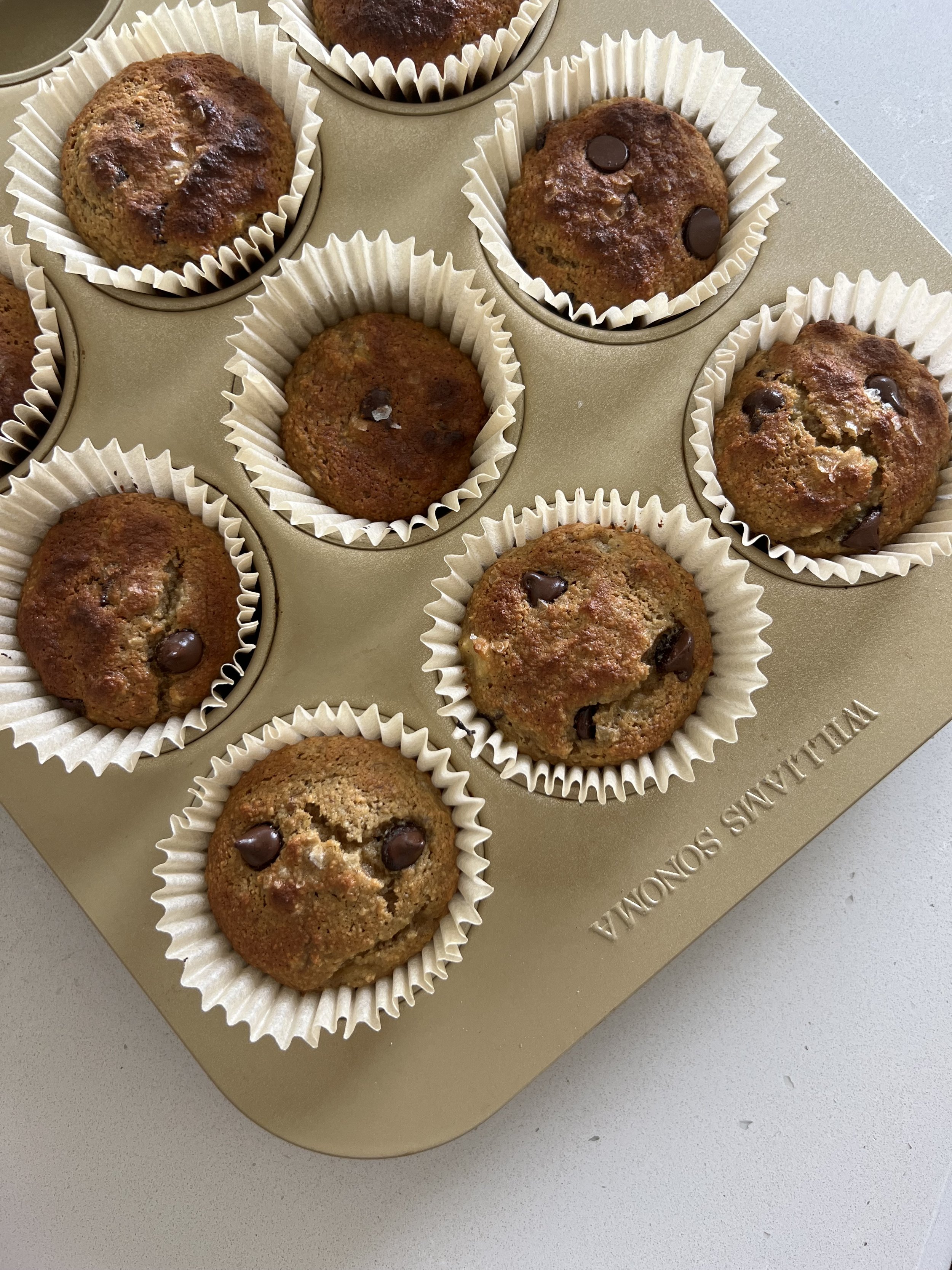 High-Protein Collagen PB & Banana Chocolate Chip Muffins